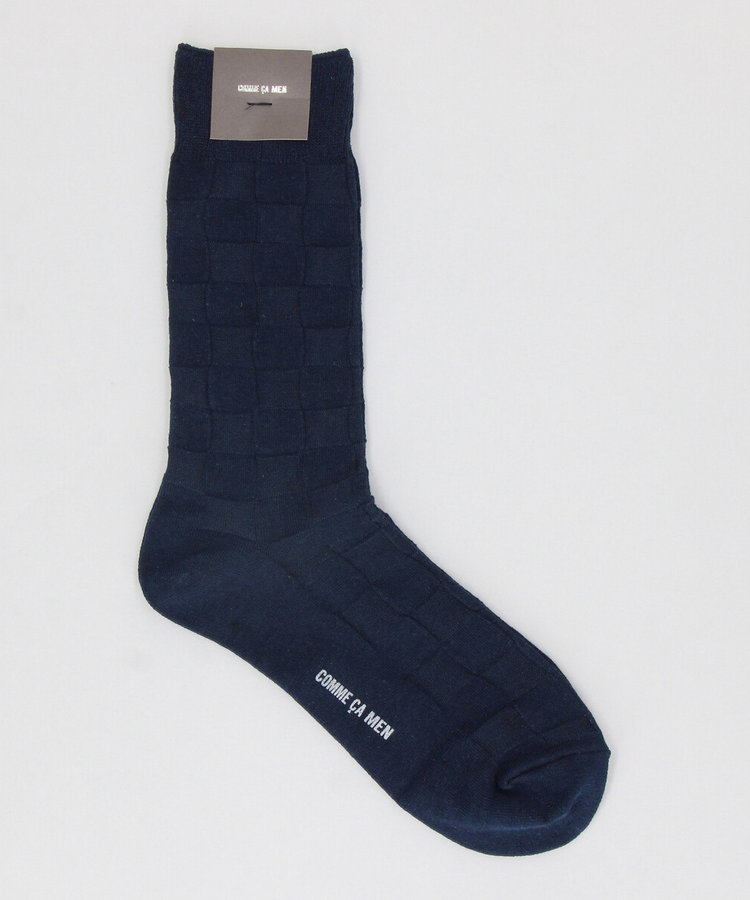大柄のブロックチェックパターンで薄く編んだソックスです。