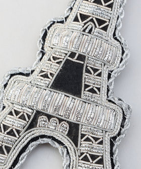 インド刺繍(ザリ刺繍)でエッフェル塔をつくっています。