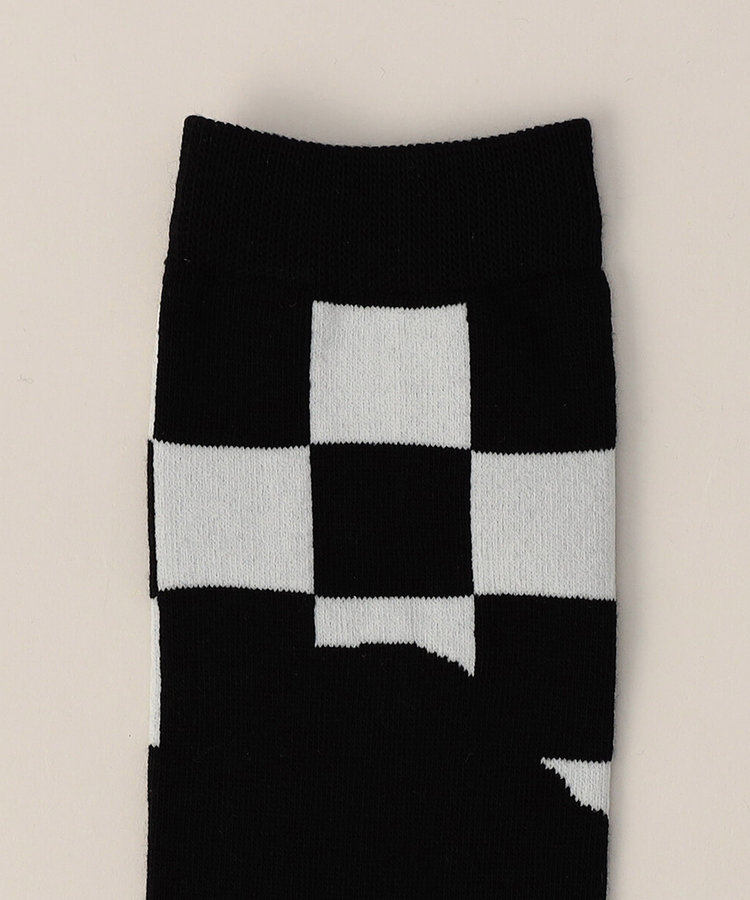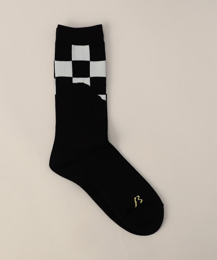 いつもの肌触りの良い糸で、チェッカーフラッグ柄と無地とのコンビネーションソックスです。