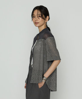 オーガンジーとの素材ミックスで、シアー感溢れるシャツです。