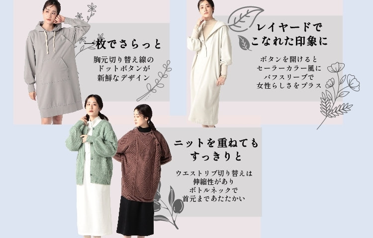 一枚でもあったか裏毛ワンピース 2023.11.08|COMME CA BLANC D'OEUF(コムサ・ブロンドオフ)|FIVE FOXes(ファイブフォックス)直営の公式通販サイトです。