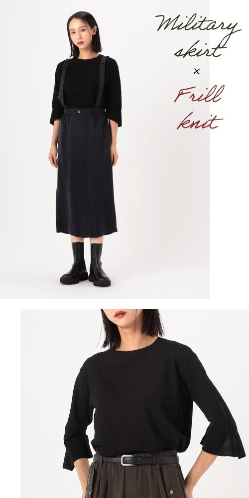 ミリタリースカート×フリルニット
