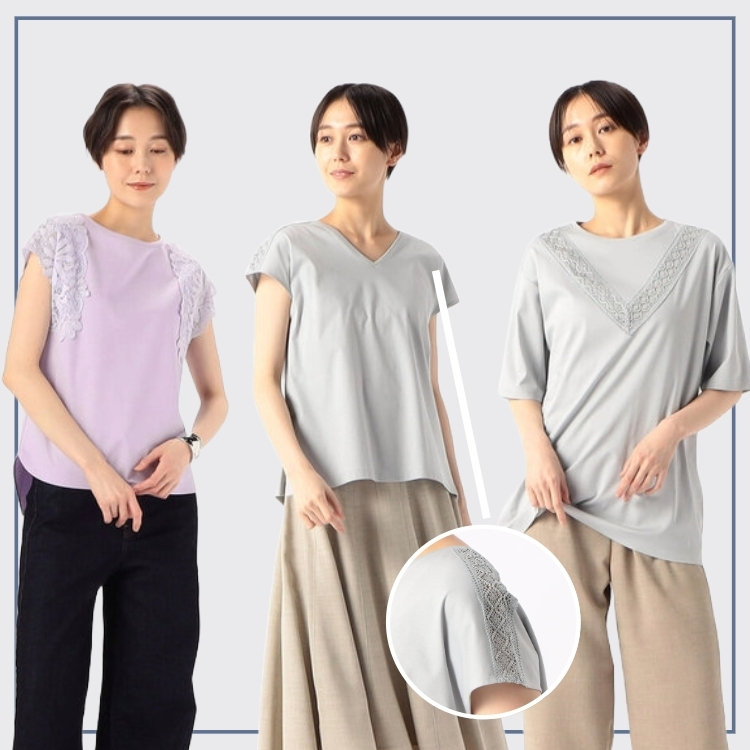 左;刺繍レースポンチTシャツ click