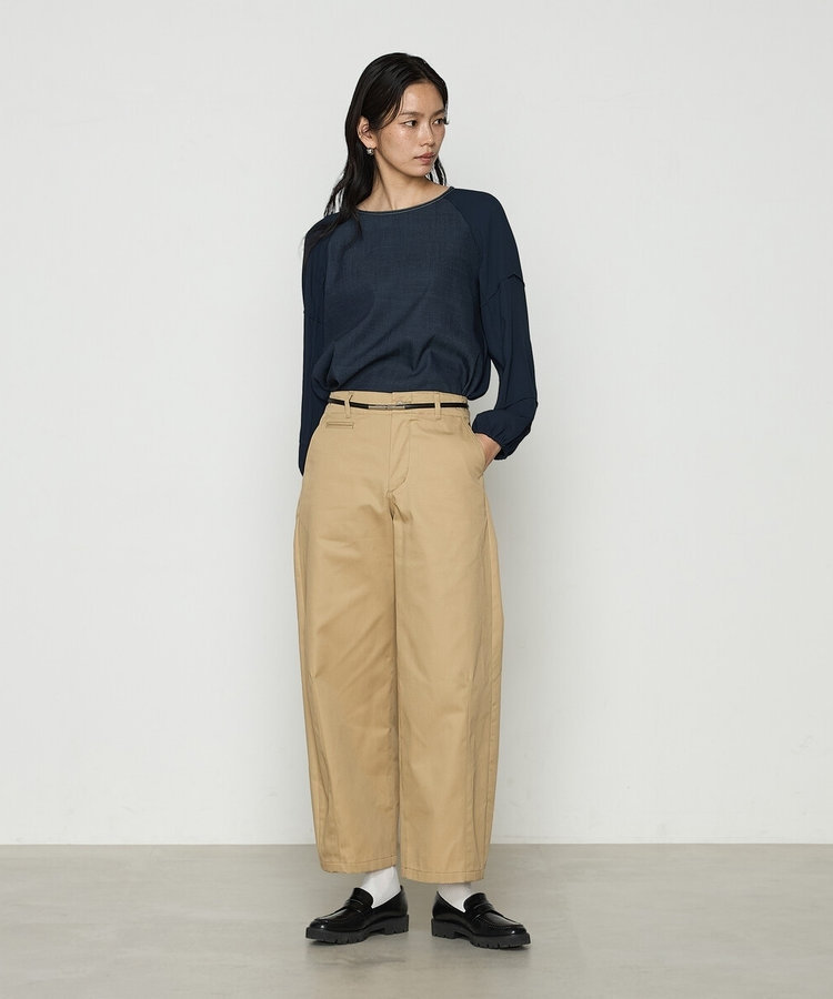 ゆるく曲線を描いたシルエットのパンツは