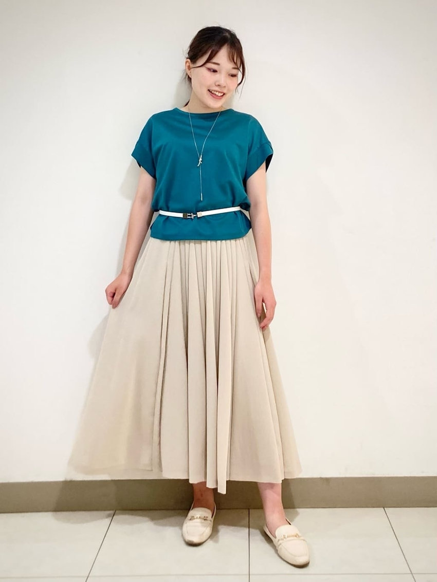 裾に向かって少しすぼめた、広がりすぎない落ち感のあるシルエットでシンプルながらも一枚で上品な印象が演出できます。