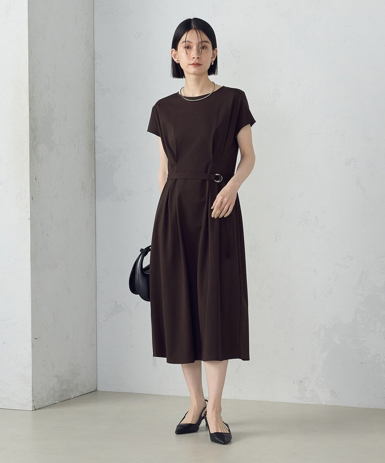 ベルト付フレンチスリーブタックワンピースは、上品さと機能性を兼ね備えた1枚です。