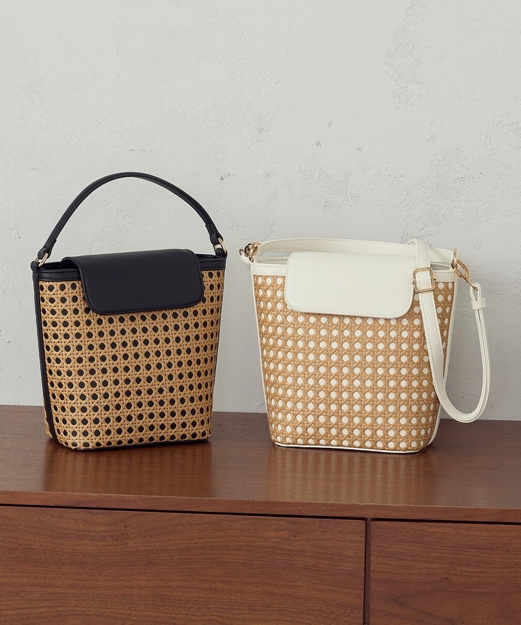 とくに春夏には、軽やかな素材のバッグが相性抜群で、おすすめはバンブー調素材を使った2wayワンハンドルバッグです。