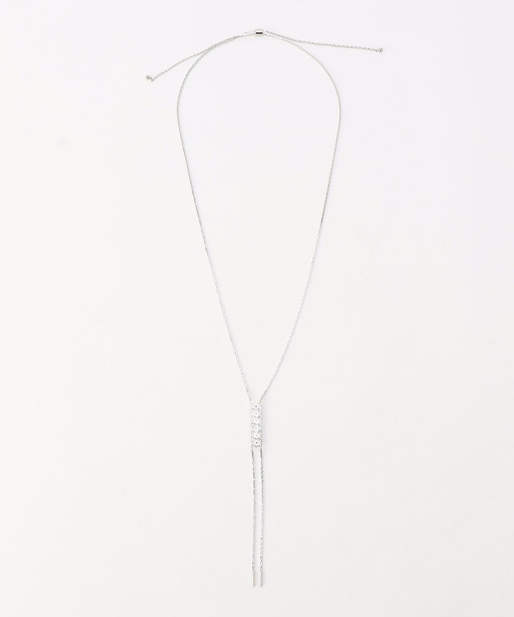 シルバーのY字ネックレスは、華奢なチェーンに小粒のカットガラスが6粒並び、繊細ながらも華やかな印象を与えてくれます。