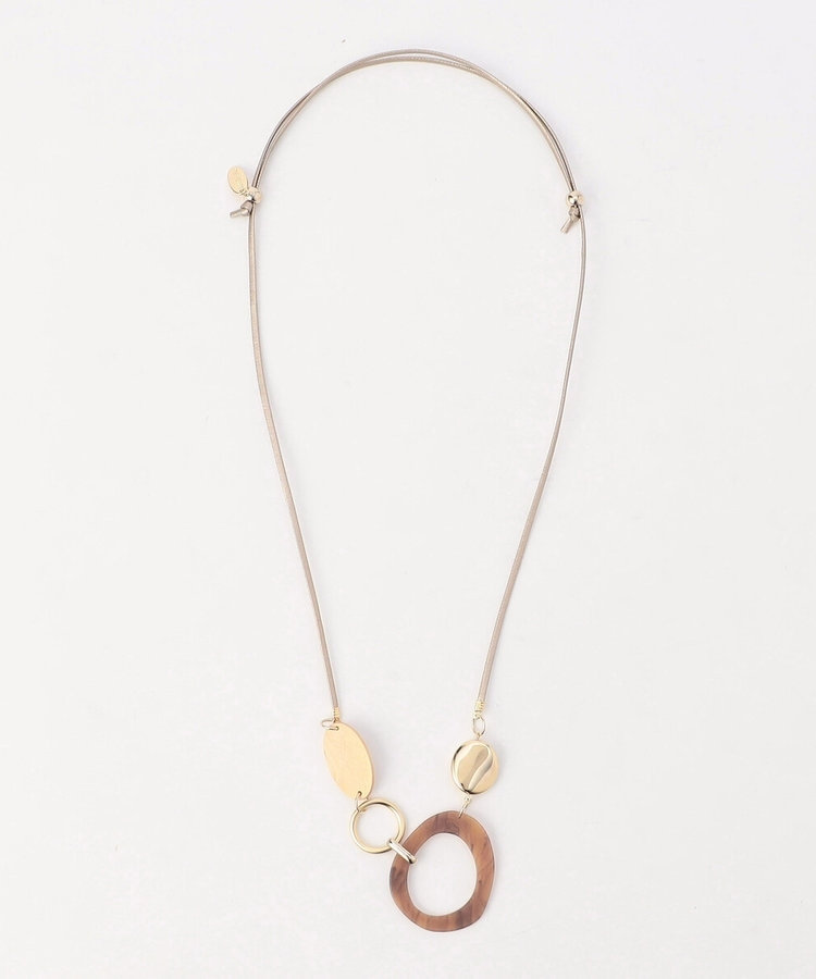 また、ウッド×メタルのネックレスは、軽やかなウッドとメタル風パーツの組み合わせで、シンプルなワンピースにアクセントを加えてくれます。