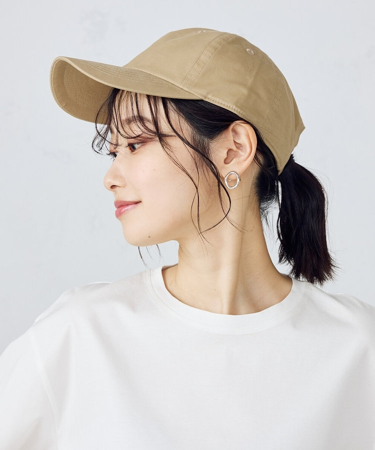 柔らかく肌触りの良いコットンツイル素材のキャップは、ベージュ・オフ・ブラックの3色展開で、ベーシックなワンピースにも合わせやすく、後頭部の金属クリップでサイズ調整も可能です。