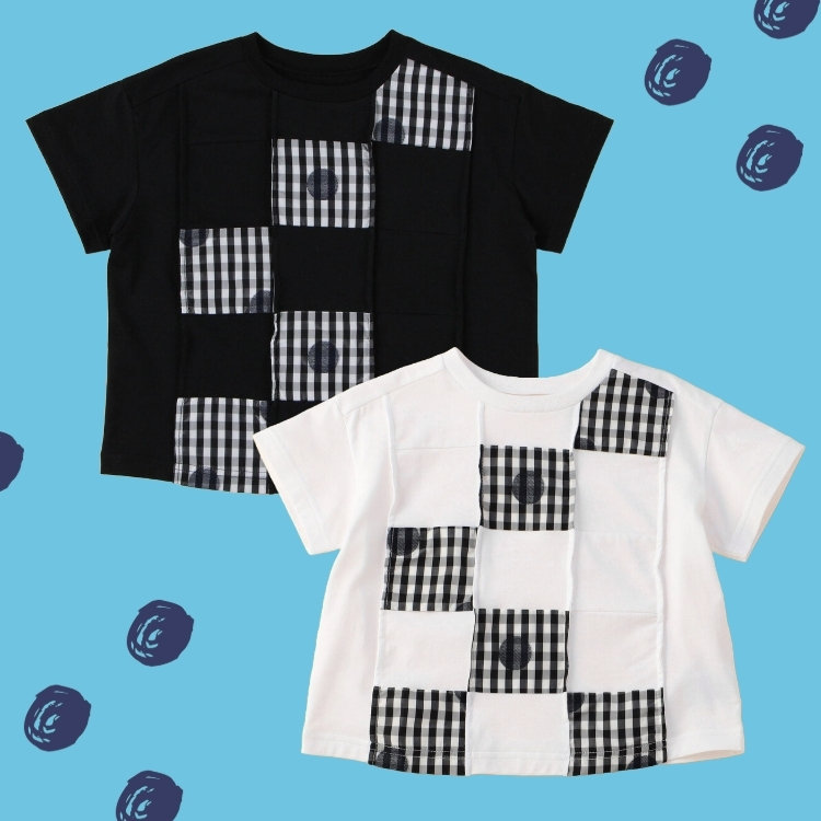 ギンガムドット パッチワークTシャツ
