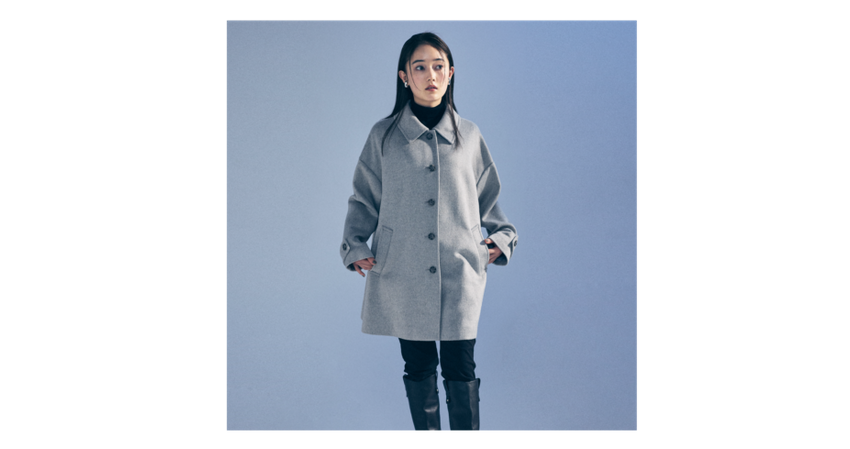 ややオーバーサイズでAラインのステンカラーコートです。