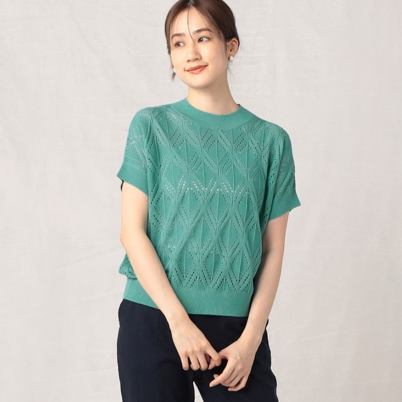 柄編み フレンチスリーブ ニットTシャツ