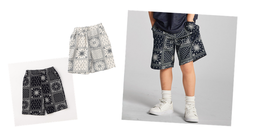 バンダナ柄を総柄でプリントしたハーフパンツ。