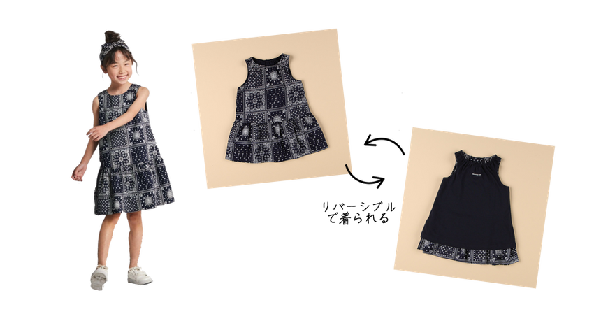 1枚で2通り楽しめるリバーシブルワンピース。
