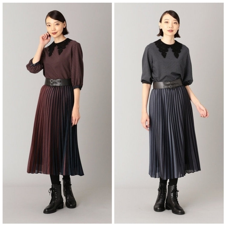 プリーツスカートとのボトムアウトなら、