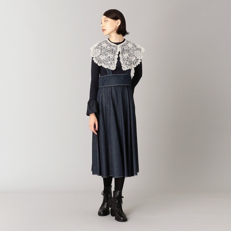 こちらは付け衿をポイントとして目立たせたスタイリング。