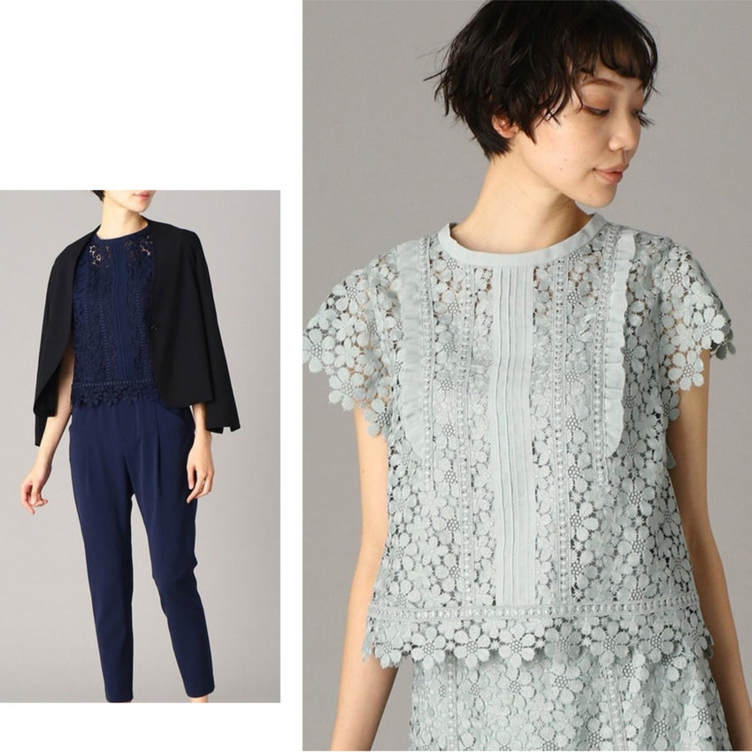 2, つつましくも華やか!レースのブラウス