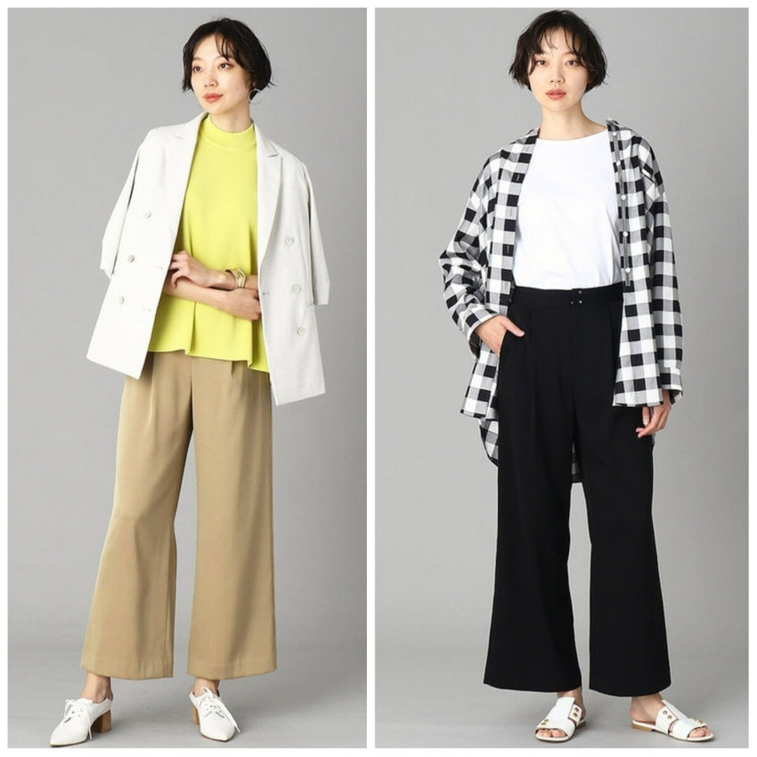 シンプルなワイドパンツは脚長効果抜群!