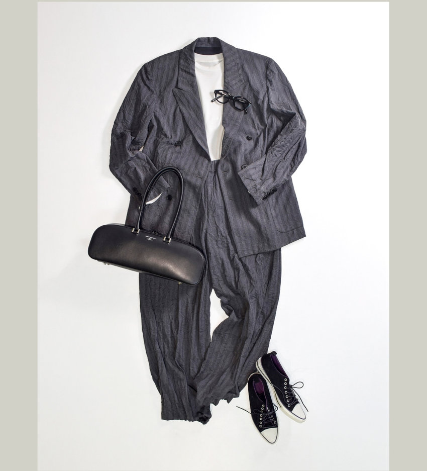 上質な遊び心は足元から。ウールの産地である尾州でつくられたセットアップも、スニーカー合わせのこなれ感がスタイリングを引き立てます。長時間座っていても気にならないので、コンサートや映画鑑賞にも最適です!