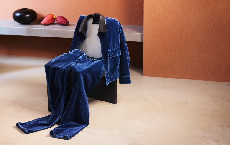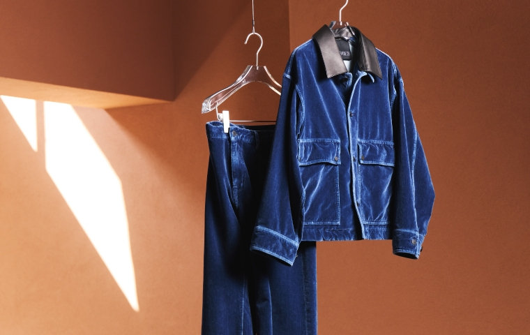 インディゴベルベットのワークジャケットや