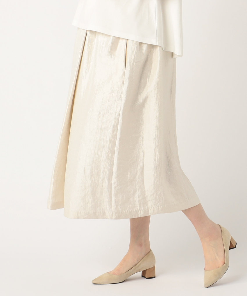 女性らしいシルエットのラップ風フレアスカート。