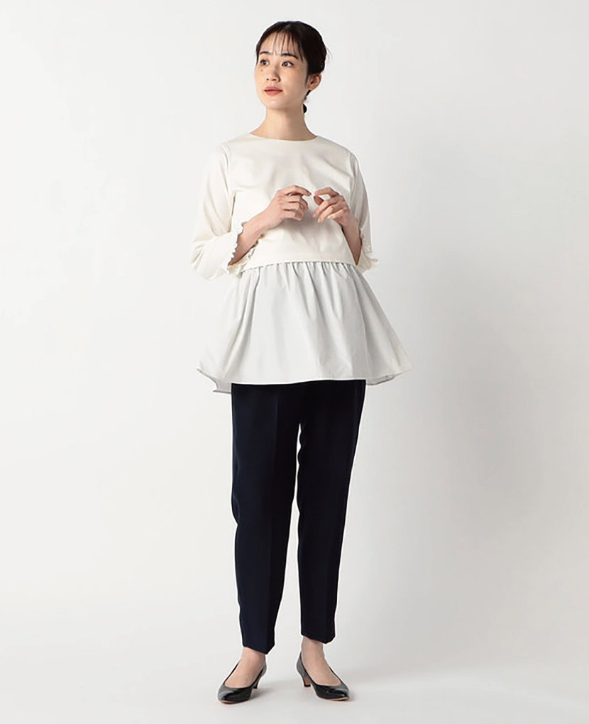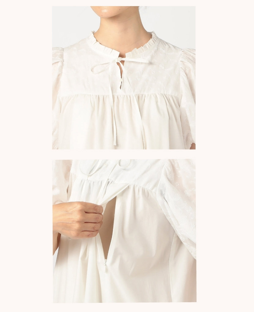 ・中央のスキッパーのあきはインナーを重ねて着回しも楽しめ、授乳も出来ます。