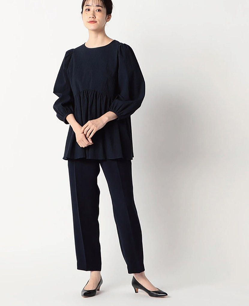 ・落ち感があり、体のラインを拾いすぎないスッキリ細見えするパンツです。