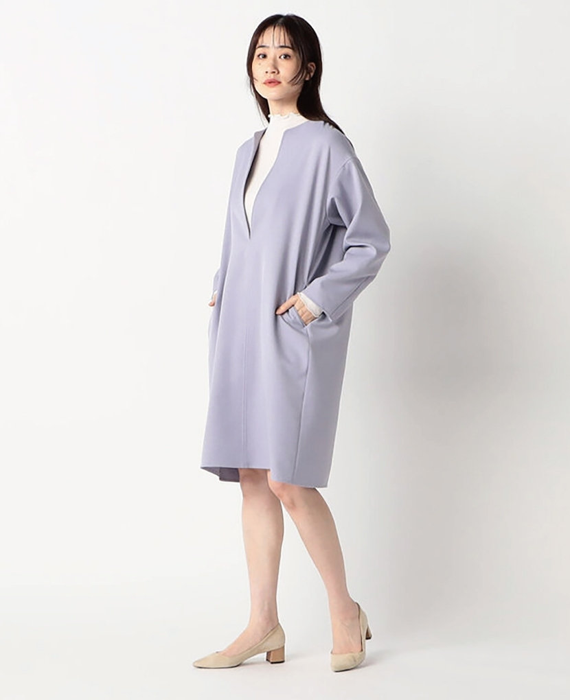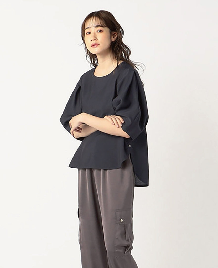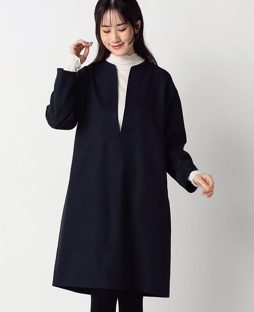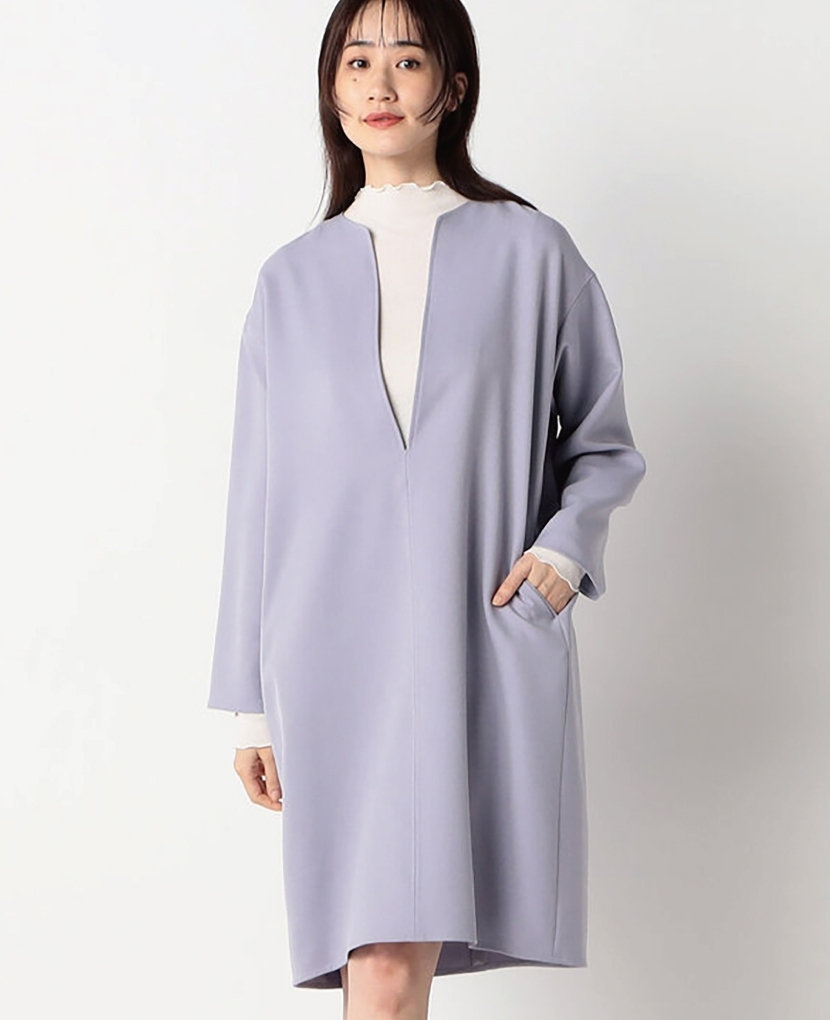 ・Vネックの衿元とコクーンシルエットで、スッキリとしたラインです。きちんと感があるのでオフィススタイルにも人気!