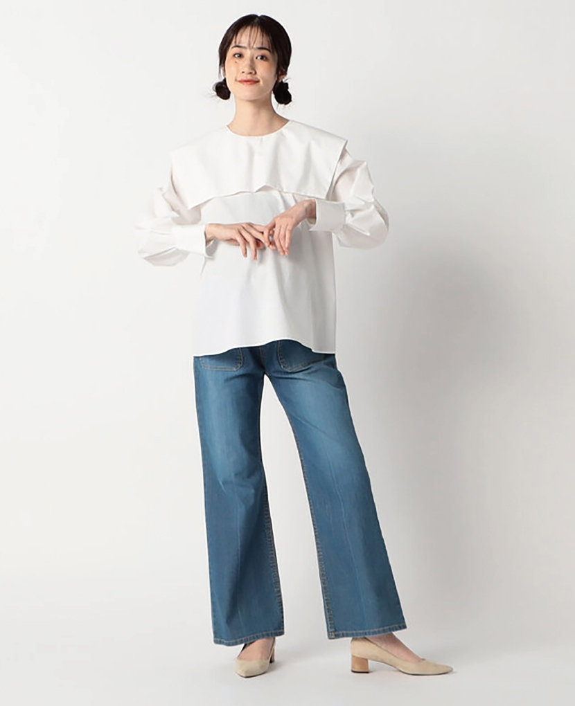 ・大きな衿がポイント!1枚で着ても存在感があり、主役になれるブラウスです。