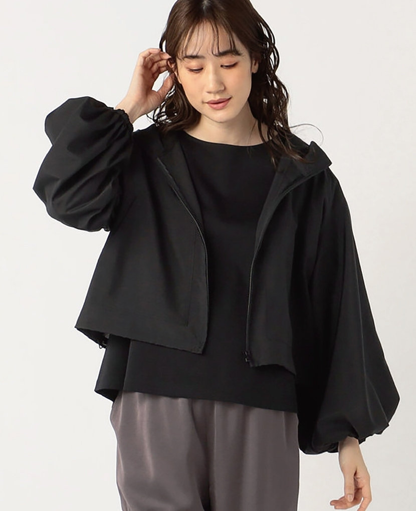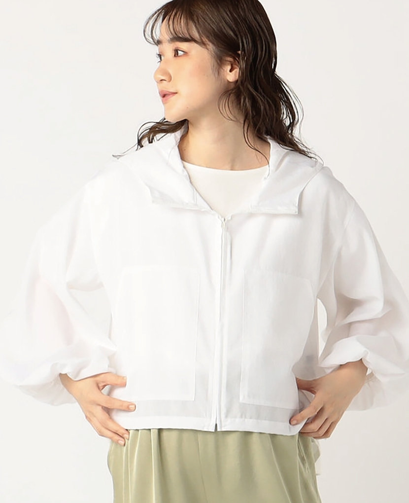・軽いシアー感とハリ感があるパーカーで、シワになりにくく撥水性とUVカット機能も付いているので、日焼け対策や梅雨シーズンの羽織としてもお勧めです。
