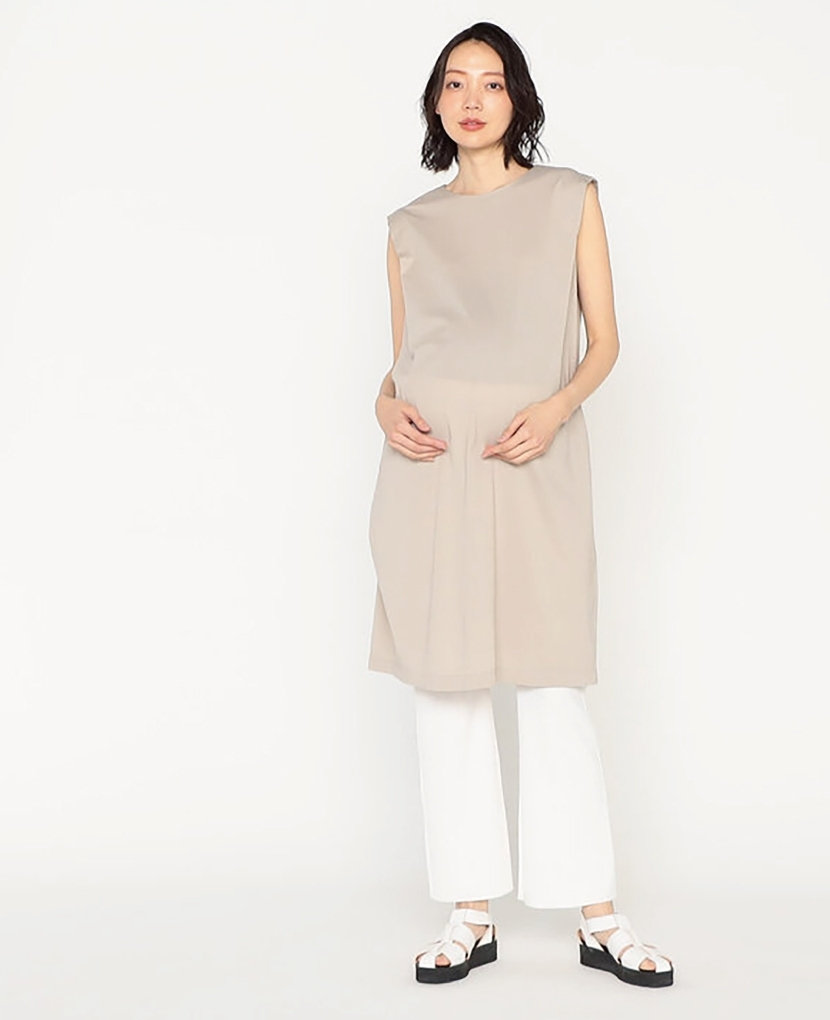 ・前後2wayデザインのストレートシルエットで、産後もスッキリ着用出来てファスナーを開けて授乳も出来ます。
