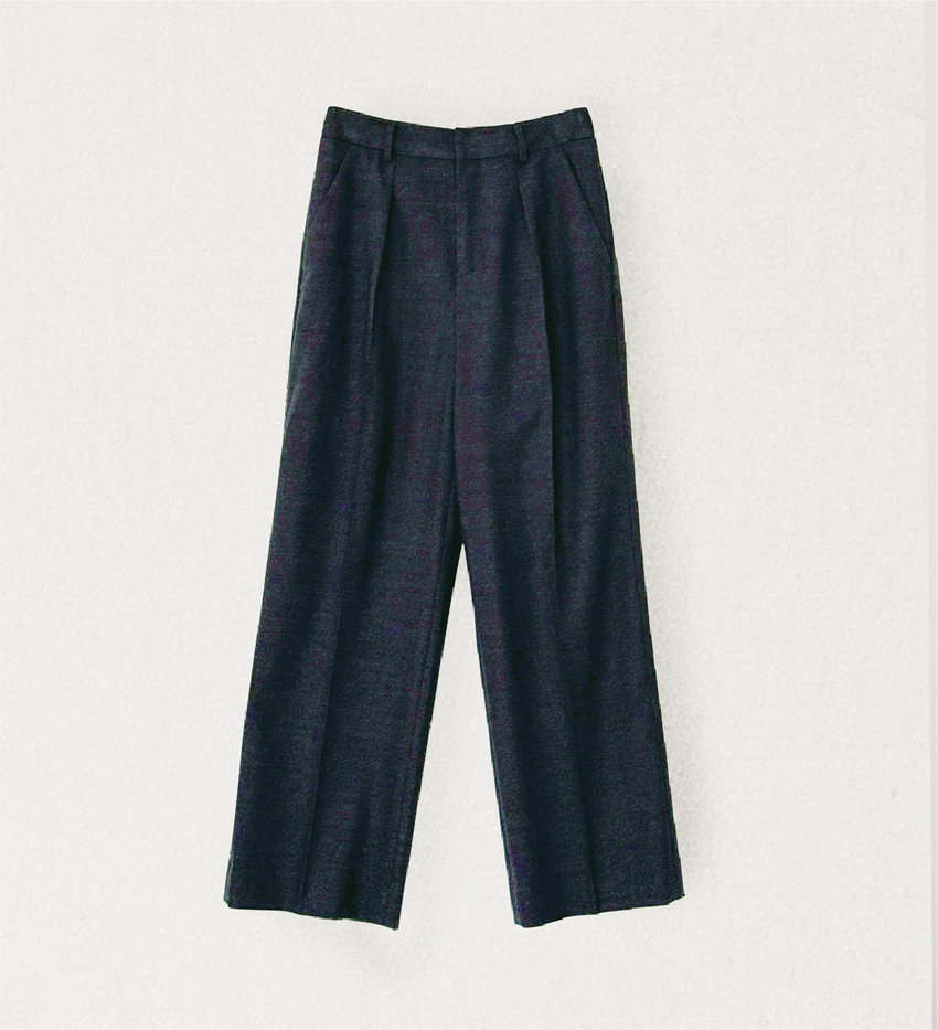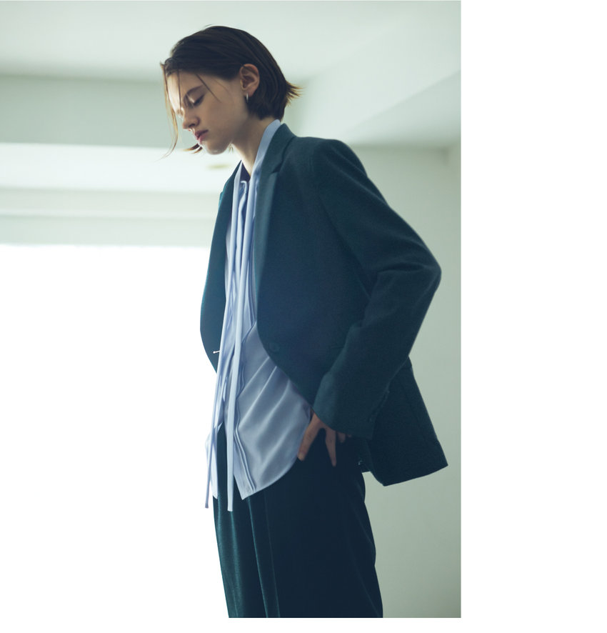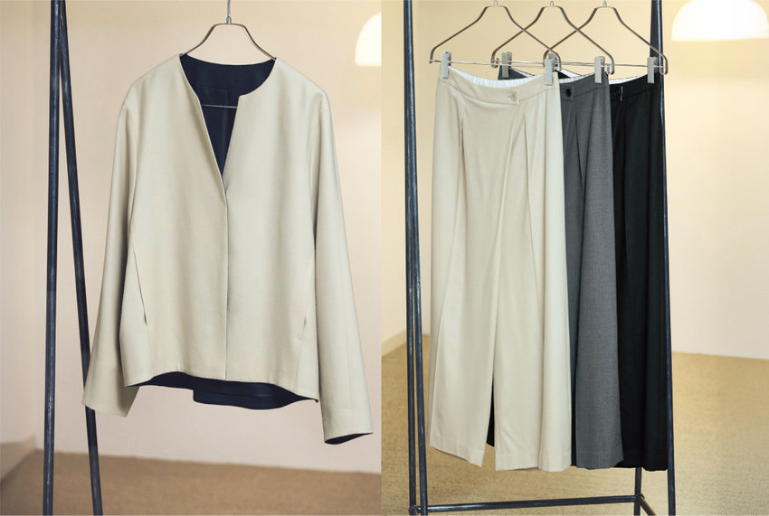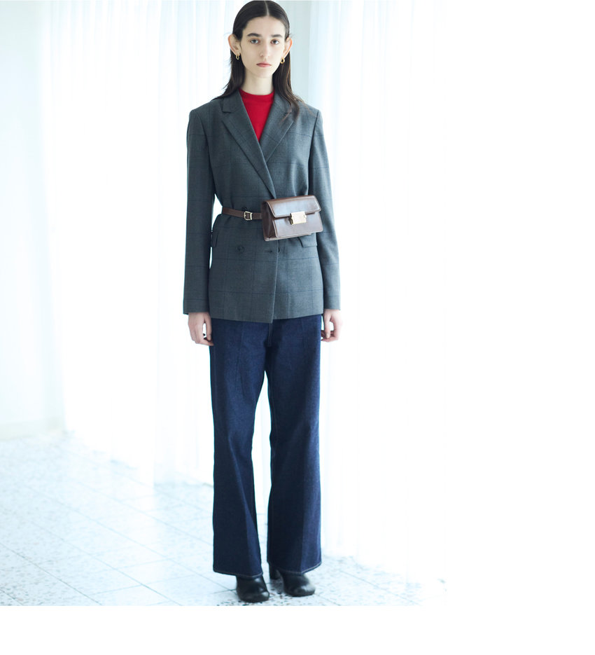 ベーシックでシンプルな仕立てが美しい、フラノのセットアップ。オフィスシーンにぴったりの、シングルテーラード、スカート、ワイドパンツは、組み合わせ次第であなたに寄り添う一着に。
