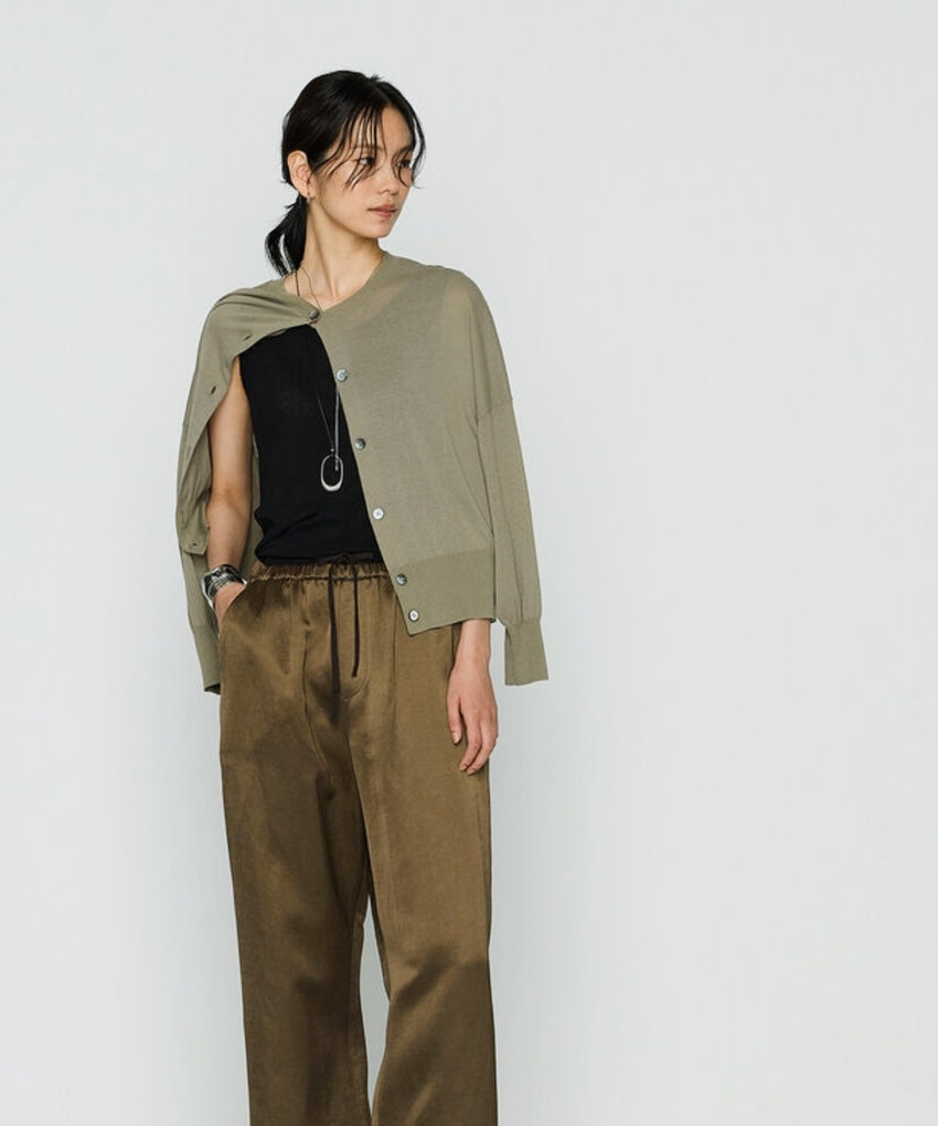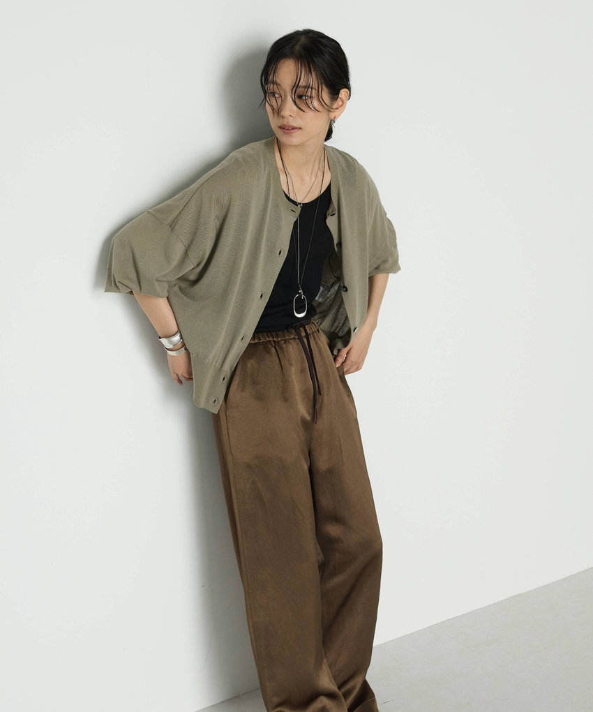 シルクのような光沢が上品なカーディガン。