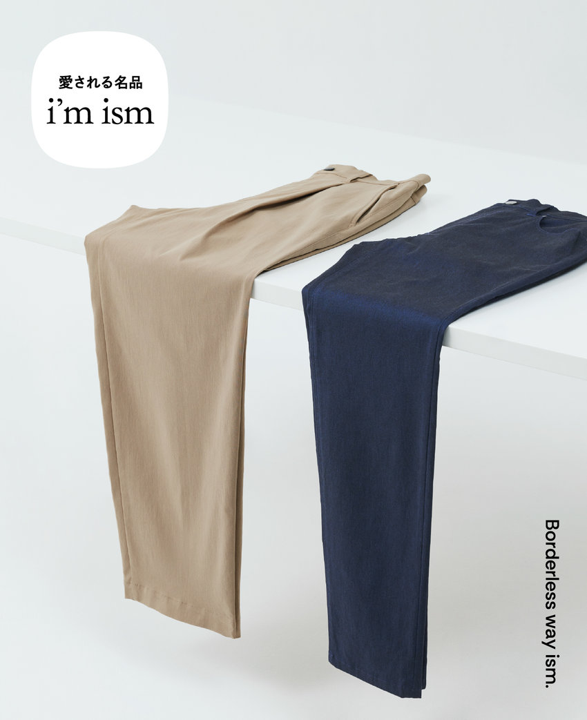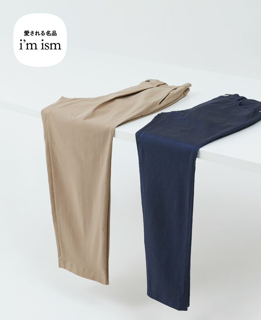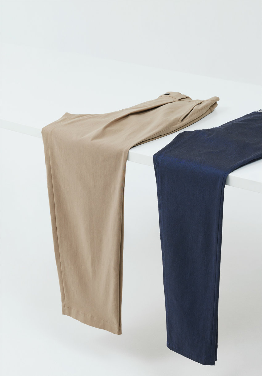 伸縮性に富んだツイル素材は、長時間の着用でも美しいシルエットをキープ。身も心も快適ながら、見た目はあくまでもスマートに。イージー仕様のウエストゴムが締め付け感を抑えるワイドテーパードと、ウエストがフィットするよう工夫が施されたスリムスキニーの2型展開。