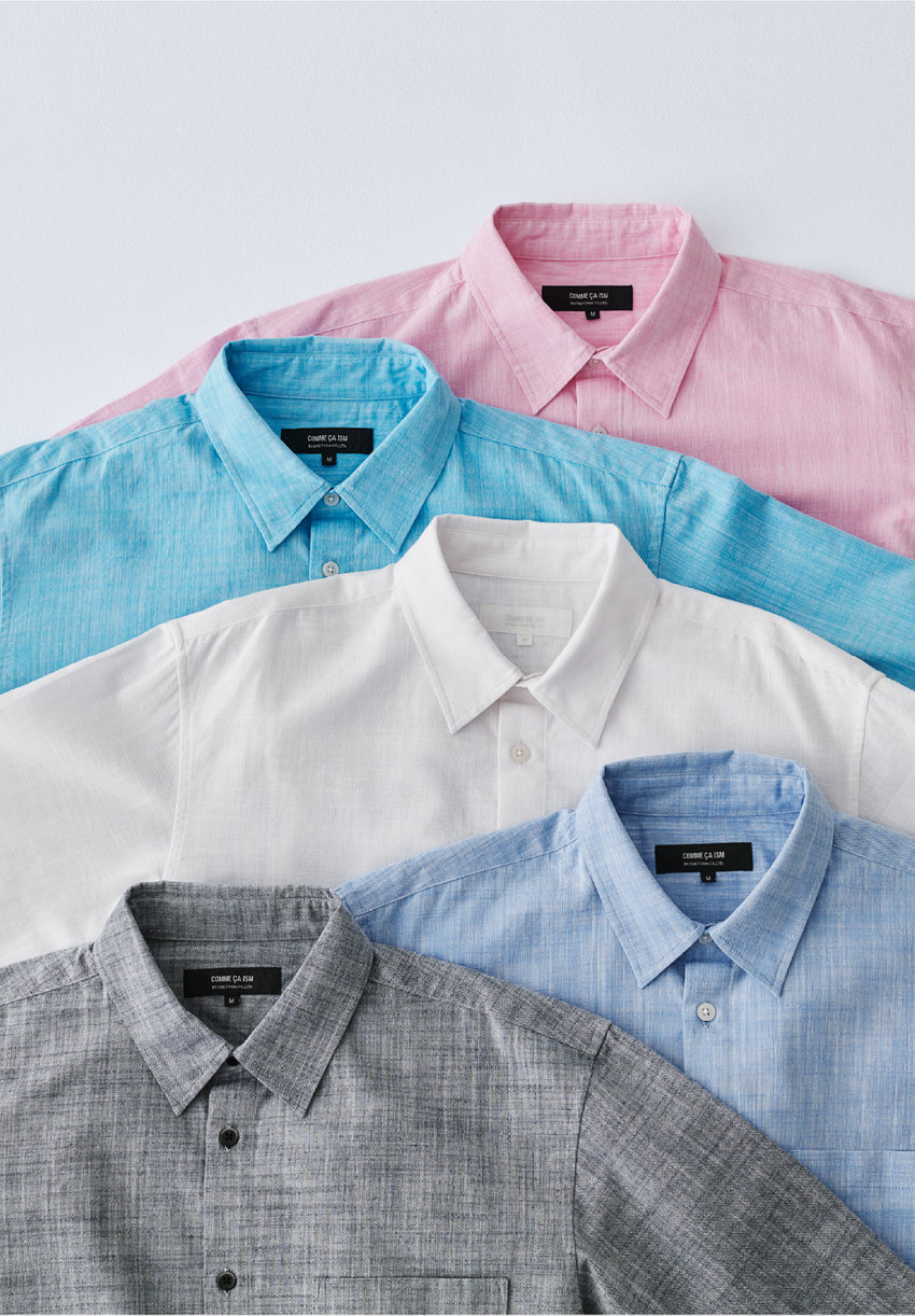 天然素材のコットンリネンを使ったシャンブレーシャツは、柔らかな綿と通気性のある麻で、暑い日もノーストレス。首や脇まわりがコンパクトな設計でジャケットと重ねてもすっきり。袖はロールアップも可能。発色の鮮やかなカラーが揃い、春から初秋まで活躍します。