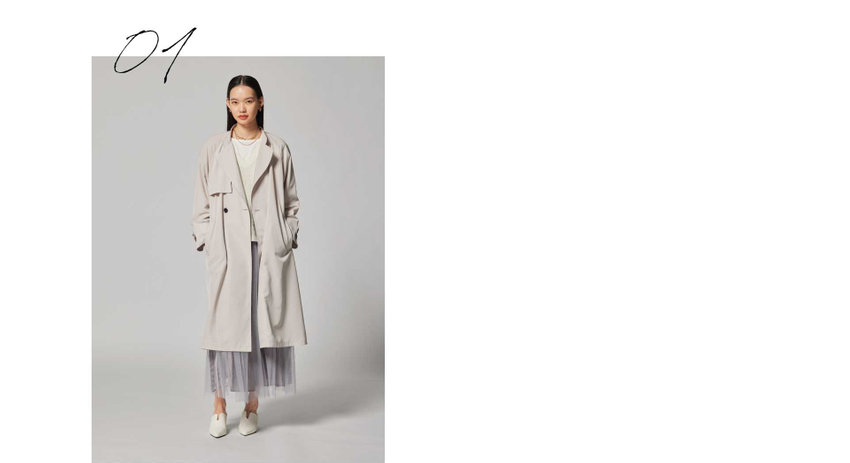 スプリングコート x チュールスカート