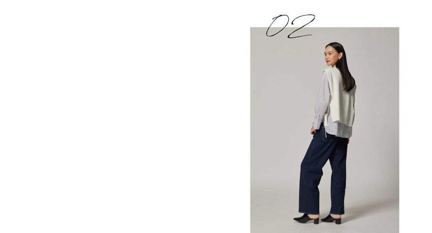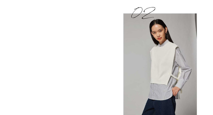 ニットベスト x ストライプシャツ x