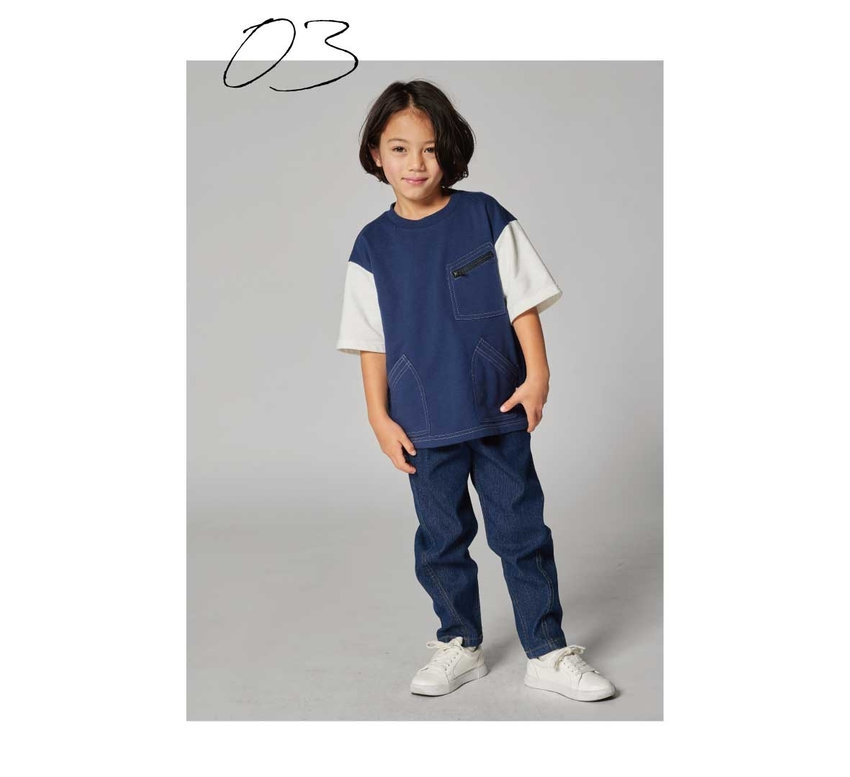 デニム異素材使いロングパンツ