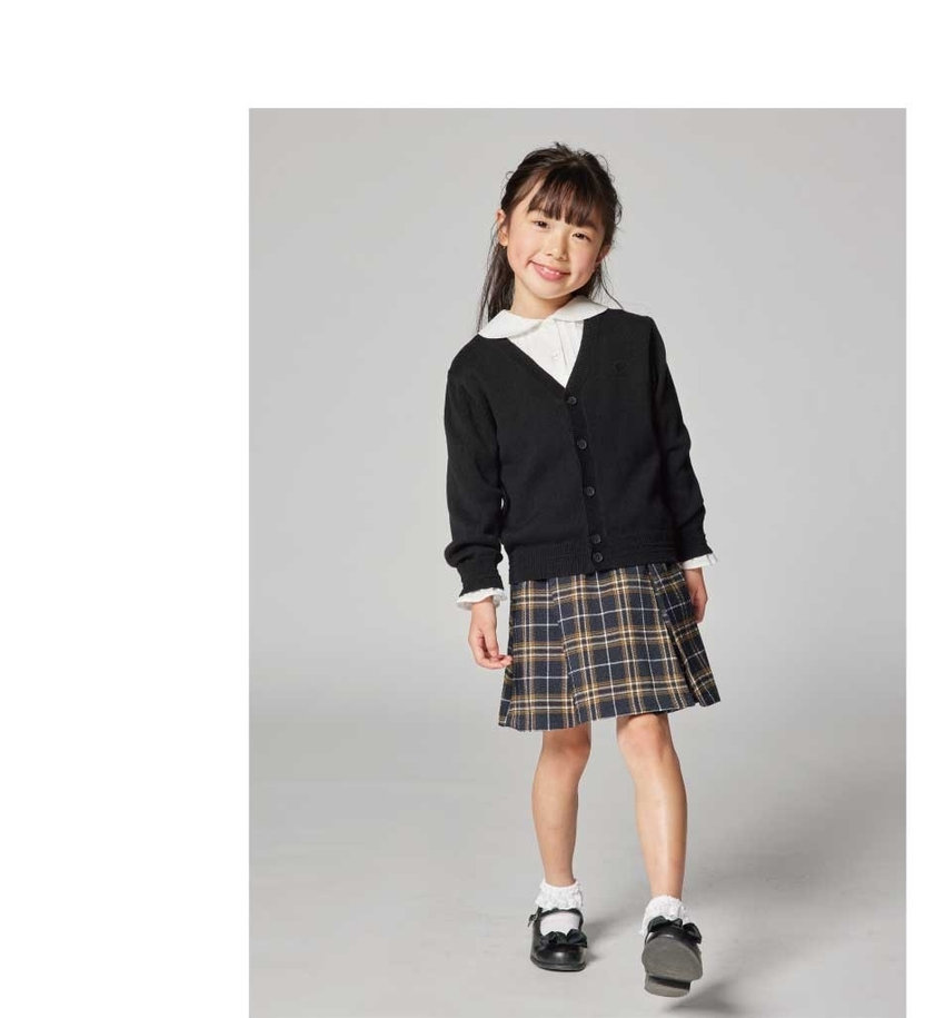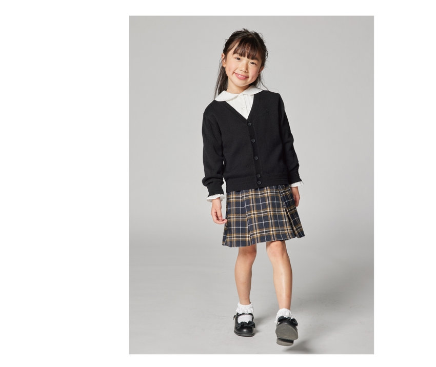 カーディガン × チェックスカート