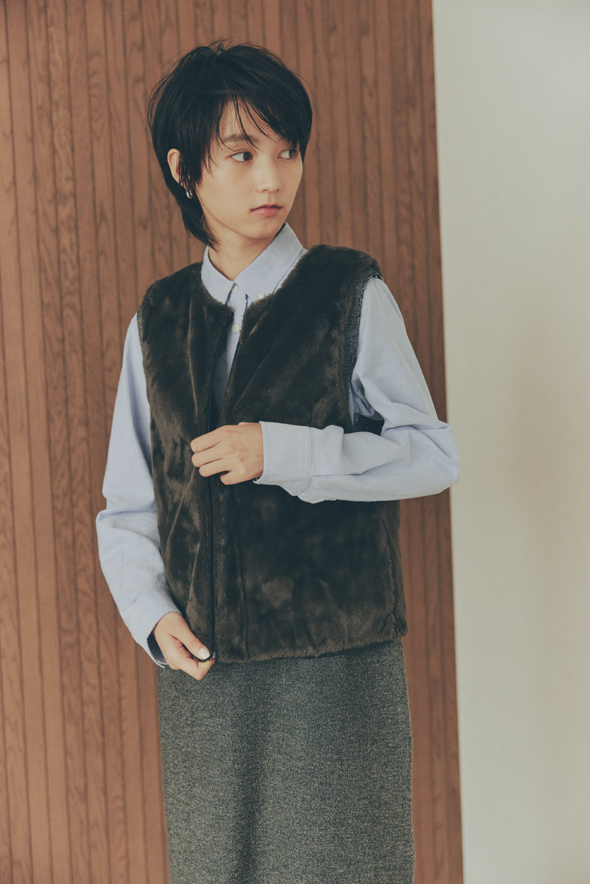表にステッチワークのないデザイン、ウール調の素材を使ったダウンジレは、THEダウンではないところが、普段のスタリングにも取り入れやすく、シーンを選ばず着まわせる一枚。ジレを選べば、カットソーを合わせたり、ニットを合わせたり、中に合わせるもの次第で、ダウンでも長い期間着られます。
