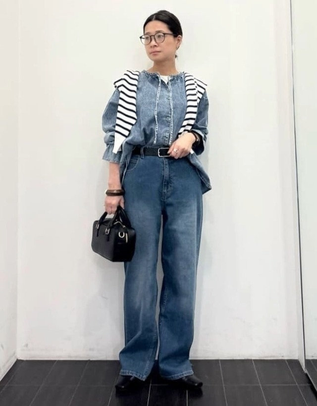 黒の小物で合わせて甘辛デニムonデニムスタイルです!