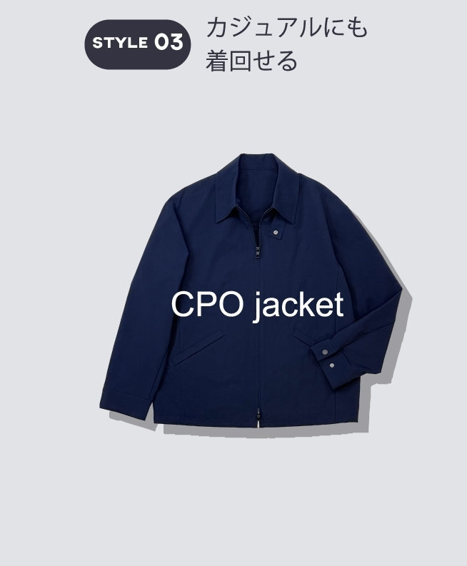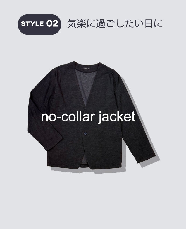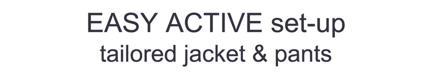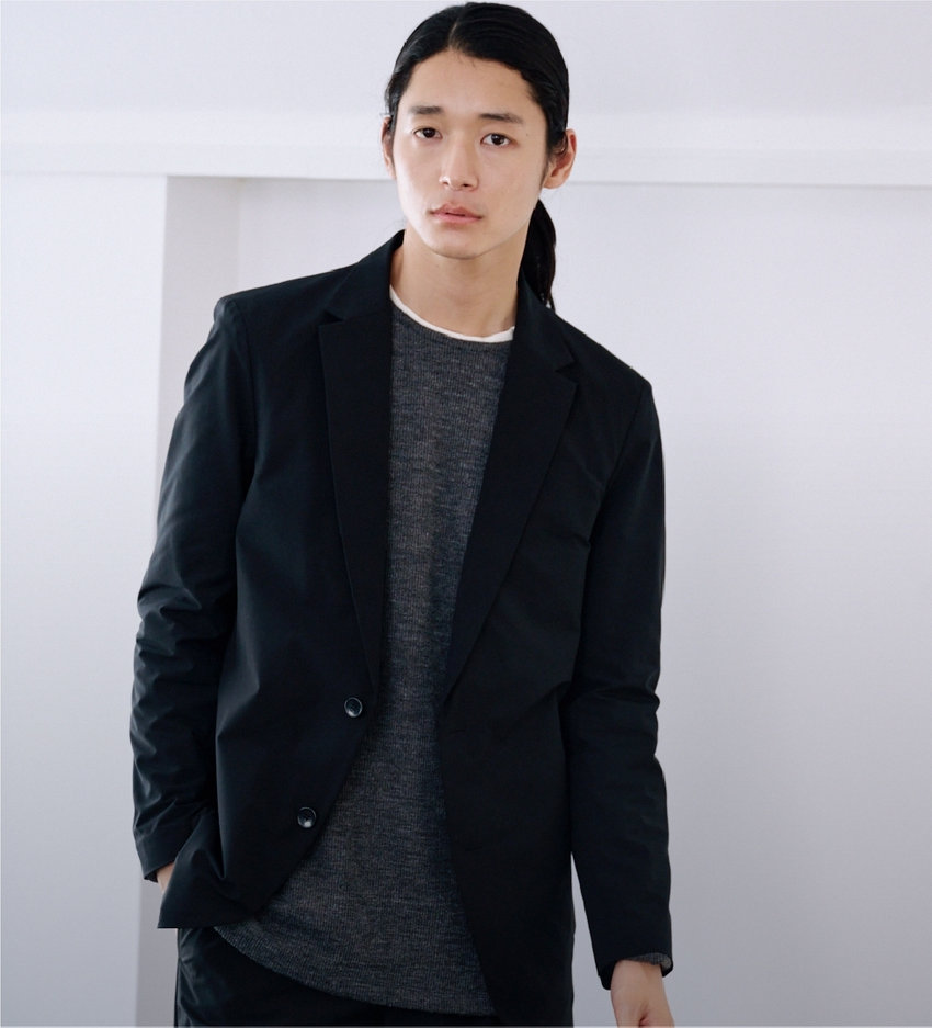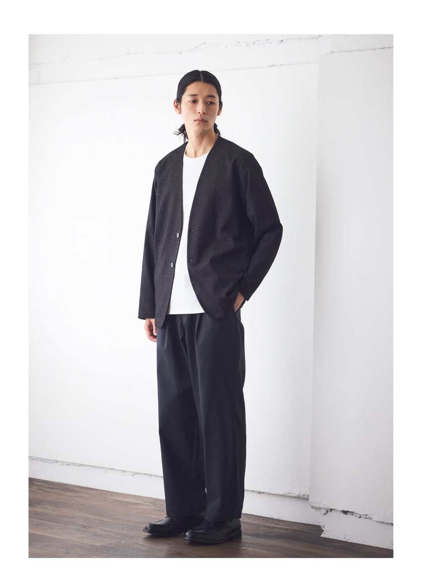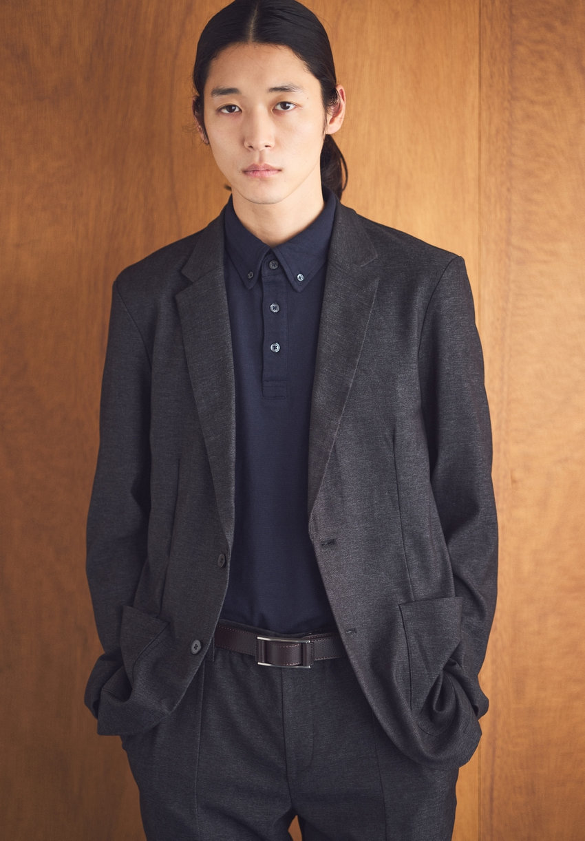 高いストレッチ性で、着心地良く。心地よく過ごせて、かつスタイリッシュに。スマートであっても無理はしない。イージータイプのジャケットは、さらっとカーディガン感覚で羽織れる。パンツはセンタープレス入りで上品な印象のテーパードシルエット。アクティブな中にも、きちんとした上品さのあるスタイル。