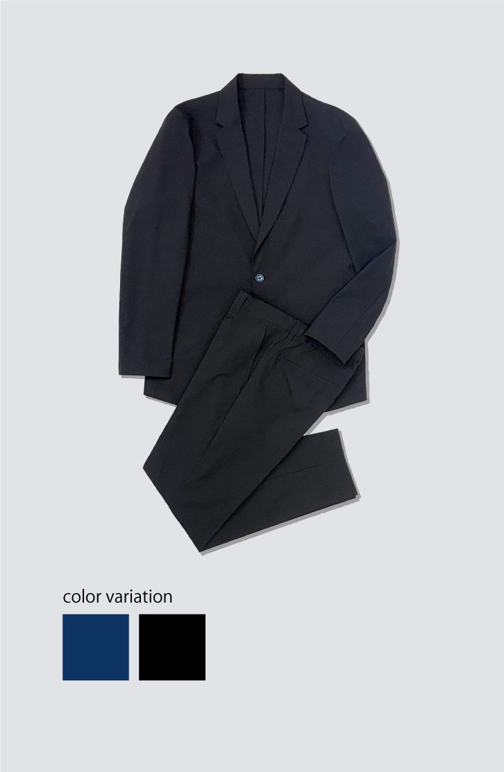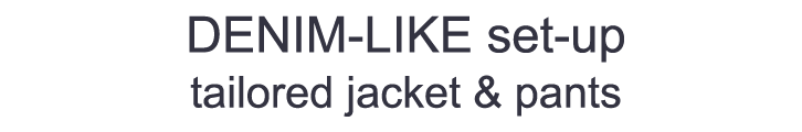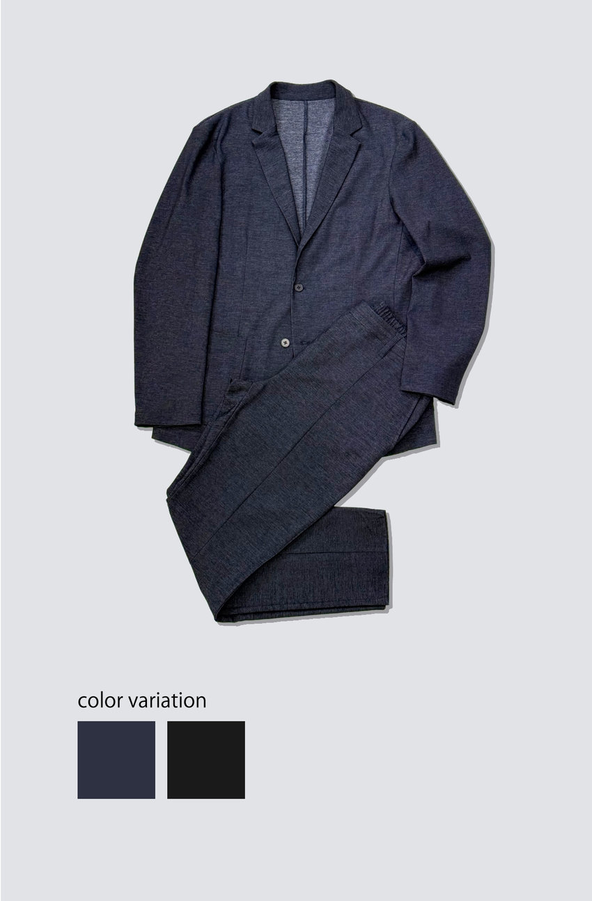 デニムのカジュアルな魅力と機能性を両立させた人気のロングセラー、デニムライクシリーズのNEWバリエーション。テーラードタイプのジャケットのセットアップスタイルは、お仕事にもおすすめ。必要以上のディテールは省いたシンプルなデザイン。きちんとした印象がありながらも、羽織感覚で着られる軽い着心地。ストレッチ性抜群で着心地も良く。
