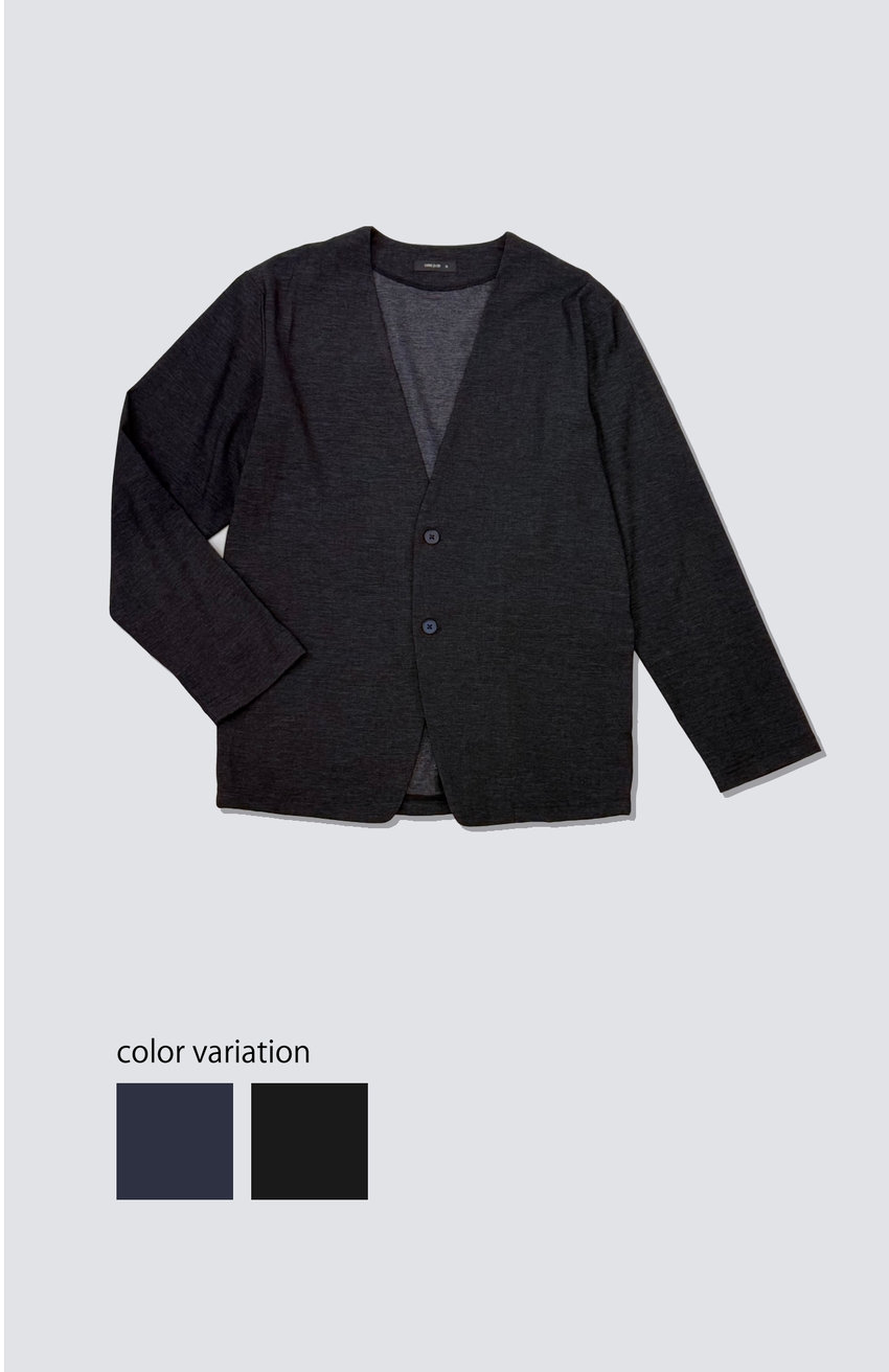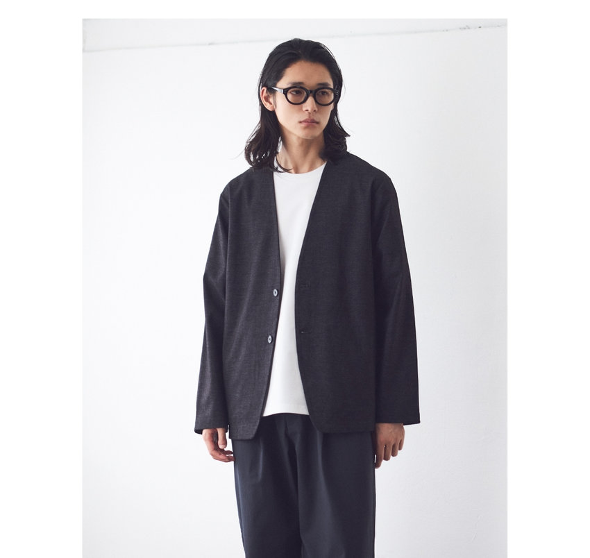 デニムライク素材のノーカーラージャケットは、ほぼカーディガン感覚で着られる一枚。カーディガン以上、ジャケット未満の程よさで、ラフなお仕事着にも。優れたストレッチ&キックバック、シワになりにくく、洗濯機洗いOK。デニム見えなのに色落ちの心配もなく。日常使いにピッタリな、コムサイズムのベーシック。