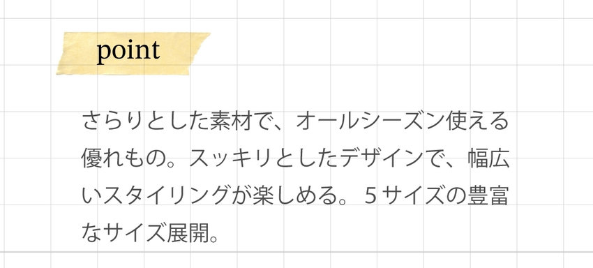 豊富なサイズ展開で、私に合うサイズがきっとある。