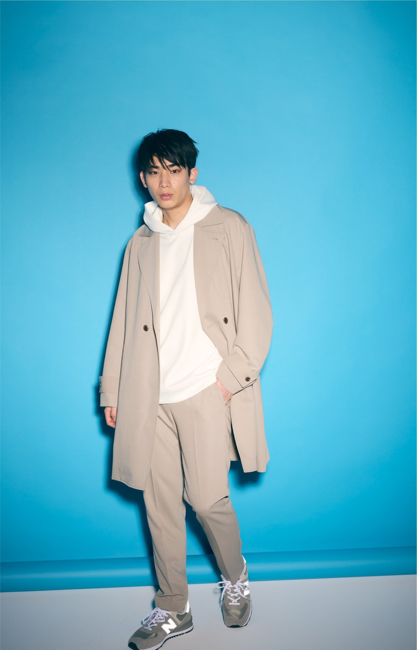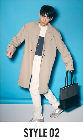 同素材のパンツと合わせた、コートアップスタイル。上下合わせるだけで悩まずスタイリングがキマる。ストレッチ性も抜群、着心地も良い素材で、スポーティーなスタイリングにもピッタリ。ほどよいオーバーサイズシルエットが今年らしい雰囲気に。