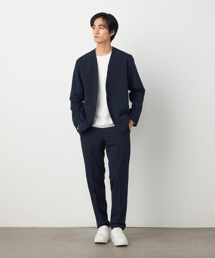 綺麗目なスタイリングに使えるノーカラージャケットと