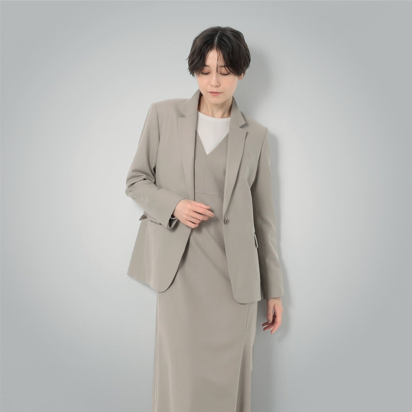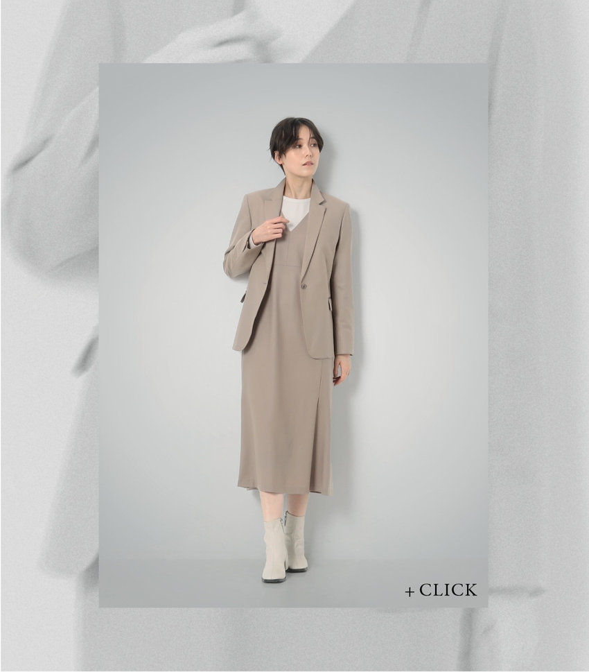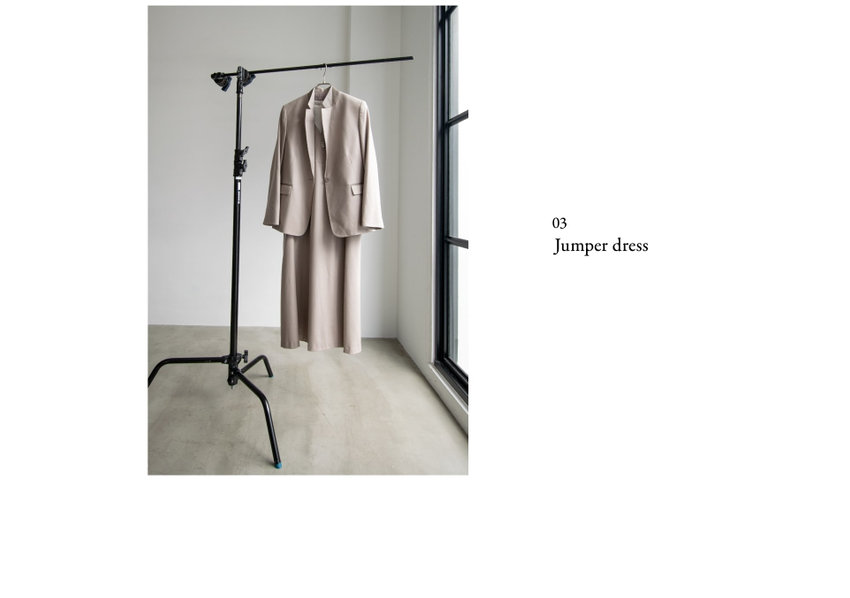 ストレートなIライン、ゆとりがありながらも、細身のカッティングで上品な印象のジャンパードレス。テーラード、ダブル、どちらのジャケットと合わせても素敵な着こなしに。