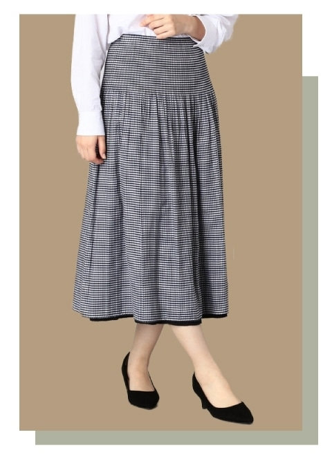 クラシカルなひざ下丈が、女性らしい印象です。